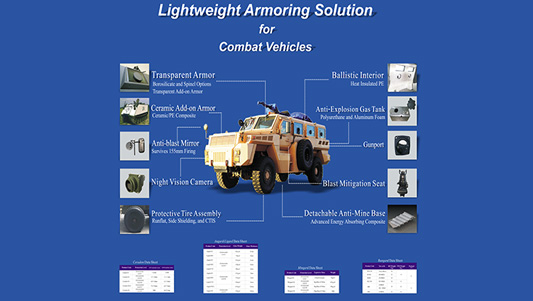 Learn More用于軍用、警用,工程及民用等各種車輛的防護(hù),應(yīng)對(duì)襲擊事件和其他群體性攻擊破壞,可抵抗棍棒,磚石,尖鎬等破壞工具的較長(zhǎng)時(shí)間攻擊,子彈射擊甚至可抵擋低當(dāng)量爆炸物產(chǎn)生的沖擊波和碎片。